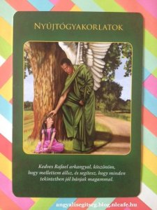 Rafael arkangyal azt kéri, hogy ma figyelj magadra! Figyelj a testedre. Gondold végig, hogy mindent megadsz-e neki? Mennyi törődést kap? Mennyi odafigyelést? Mennyi szeretetet? Mennyit mozogsz? Ma adj szeretetet a testednek, és szánj néhány percet a lazításra! Nyújtóztasd ki a tagjaidat, utána pedig egyenként küldj nekik szeretetet! Kérdezd meg angyalaidtól, hogy mivel tehetnél többet e testedért, a testi egészségedért!